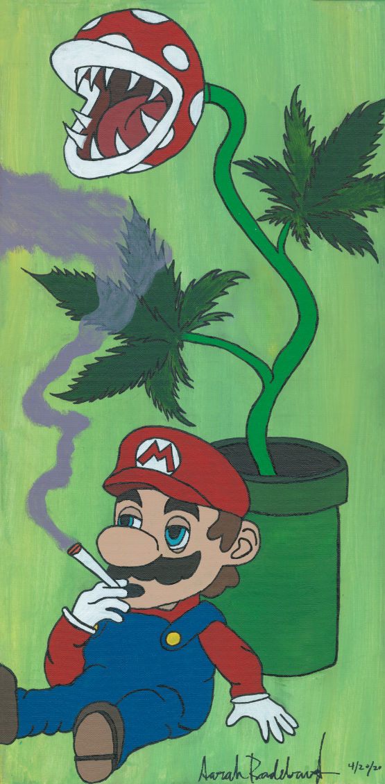 12x24 stretch canvas print of Nintendo character Mario having some fun on his day off.